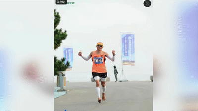近六旬的老人 十几年赤脚跑马拉松