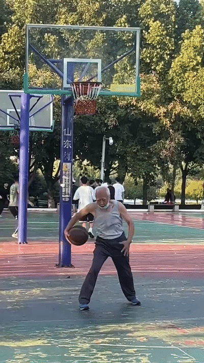 他拿着篮球