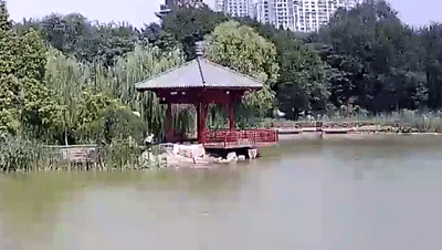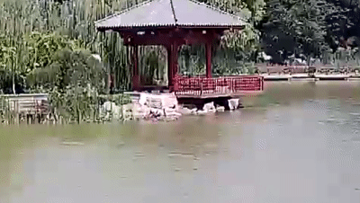 公园内人工湖边传来呼救声