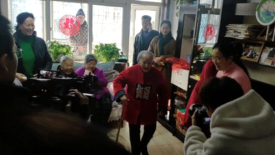 百岁寿宴当天就边唱边扭起了秧歌