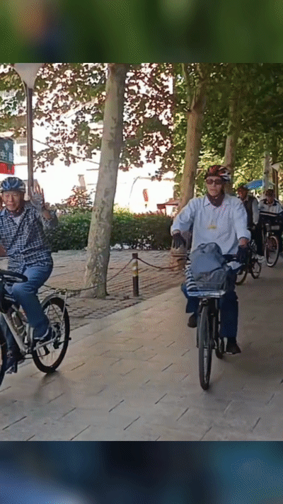 七旬老人退休后 相约一起骑车吹口琴