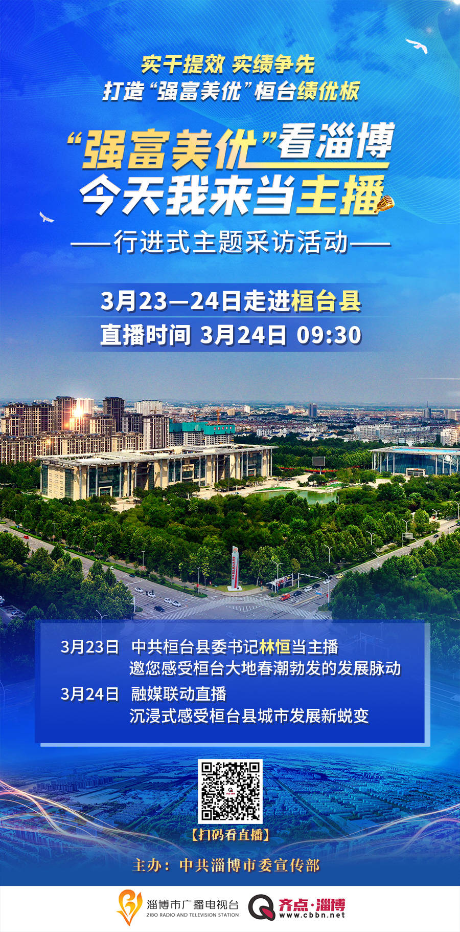 3月23日,齐点直播走进桓台县,演播室主持人与前方记者跨空间联通互动,打卡打卡淄博太极工业搪瓷有限公司搪玻璃机械装备制造项目、淄博数字农业示范区、桓台县红莲湖学校、桓台永乐巷信用示范街区、马踏湖国家湿地公园项目、马踏湖草苇编富民特色产业,沉浸式感受桓台县城市发展新蜕变。