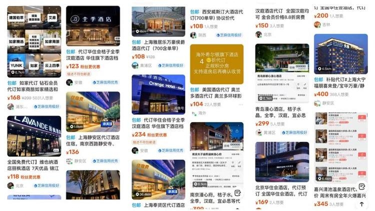 二手交易平台上有大量代订酒店信息