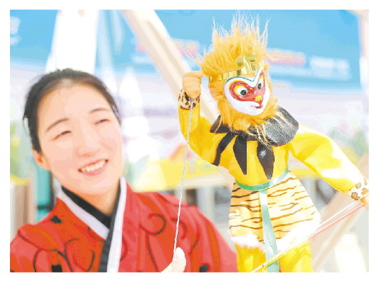 图:4月30日,青岛市市北区广兴里的木偶演出,吸引众多游客观看。(□记者 卢鹏 通讯员 张进刚 报道)