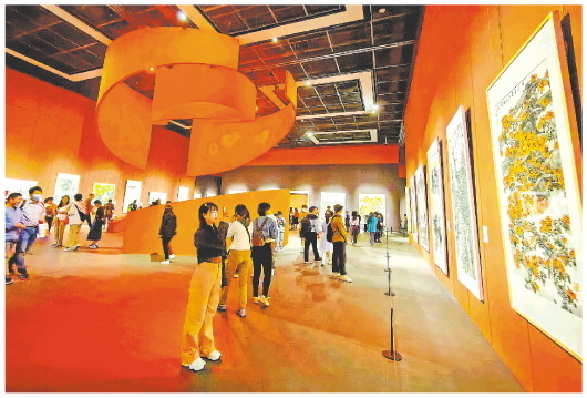 图:5月1日,游客在山东美术馆参观艺术展。(□记者 王臻儒 通讯员 姚允东 报道)