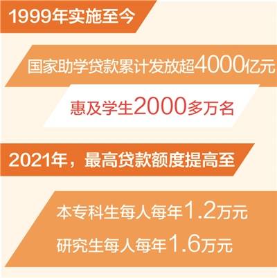 本报北京6月11日电 (记者赵婀娜、黄超)国家助学贷款作为我国高校资助政策体系的重要内容,是促进教育公平的一项重要措施。记者从教育部获悉:1999年实施至今,已累计发放助学贷款4000多亿元,共资助家庭经济困难学生2000多万名。