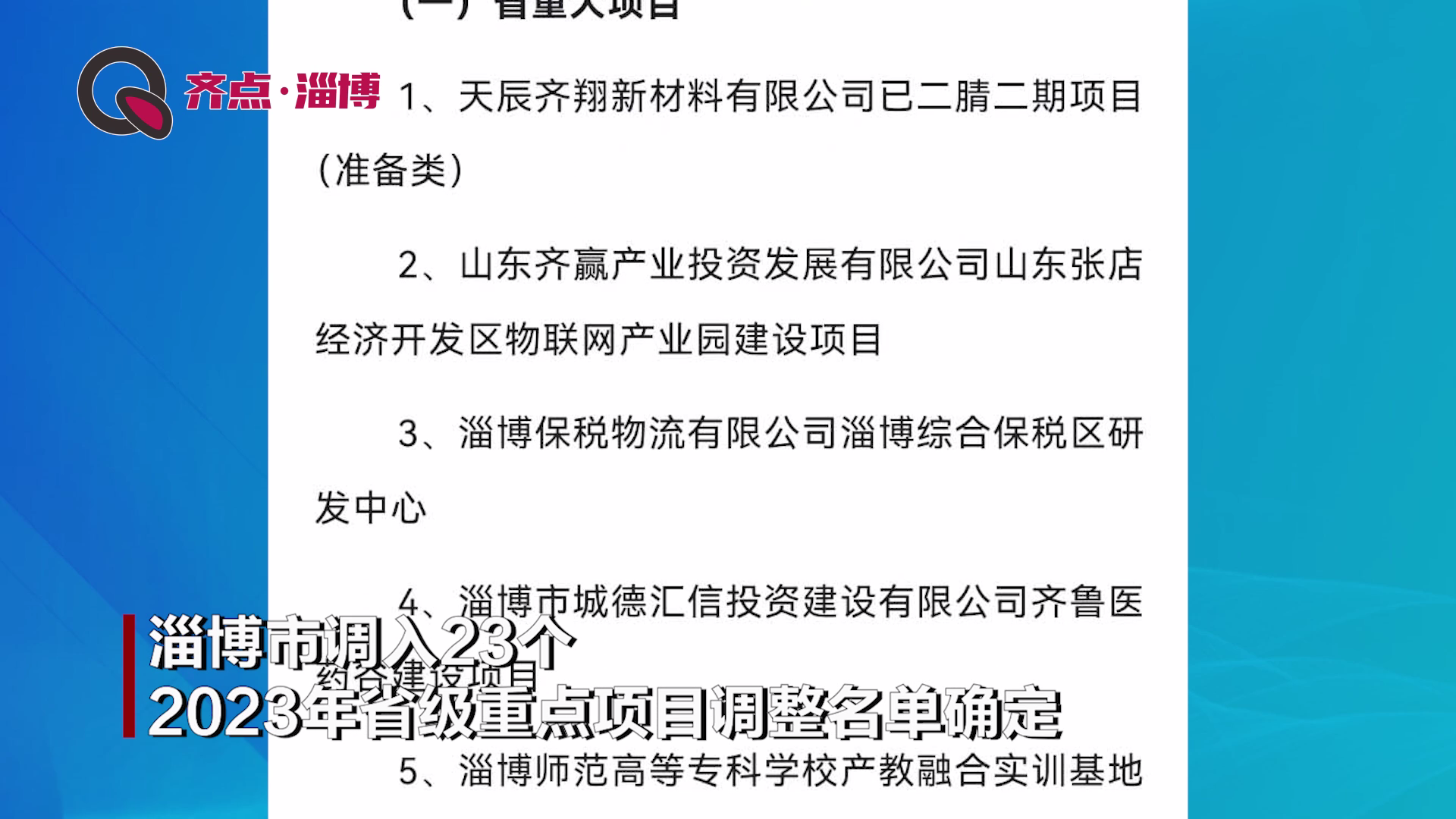 淄博市调入23个,2023年省级重点项目调整名单确定