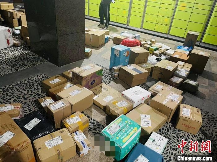 资料图:“618”电商购物节期间,某小区堆放的快递包裹。 黄慧 摄