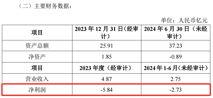 2023年、2024年上半年,一二三航的净利润分别为-5.84亿元、-2.73亿元,并且截至2024年6月30日的净资产为-0.89亿元。