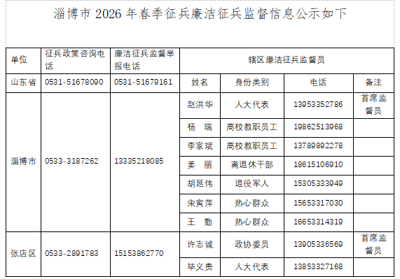 为纯正征兵风气,维护和展示党和军队良好形象,依据国家和军队关于廉洁征兵的法规政策,现将我市2026年春季征兵廉洁征兵监督举报电话予以公示。市民一旦发现有关线索,可及时拨打举报电话,市征兵办公室将严肃查处。