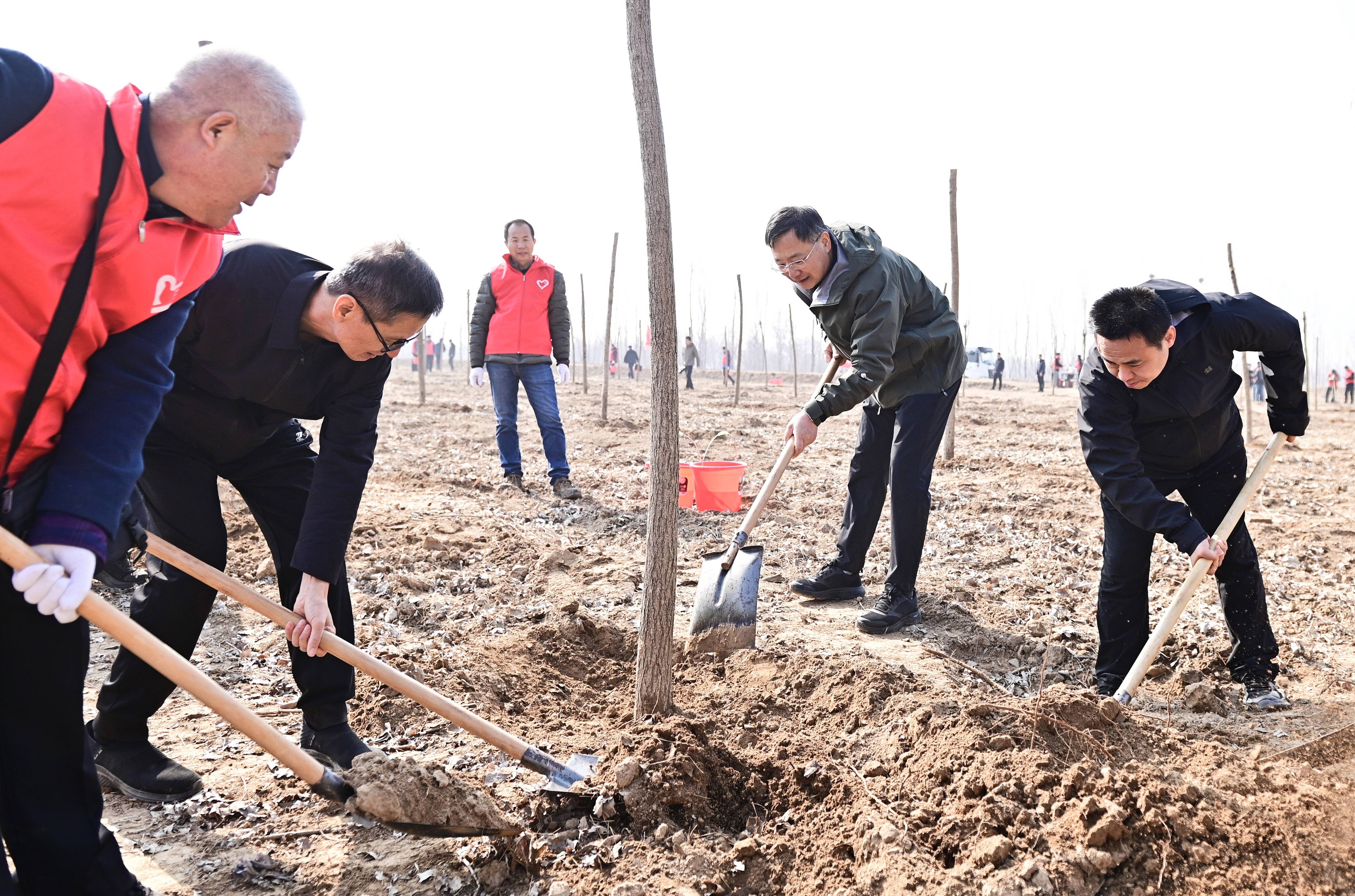 3月12日,市委书记马晓磊,市人大常委会主任孙庆雷,市委副书记、政法委书记杨旭东等市各大班子领导同志,分赴高青县、淄川区、张店区、淄博高新区,与市直机关干部、志愿者一起参加义务植树活动,共同为建设美丽淄博增绿添彩。
