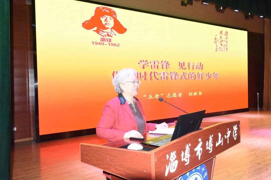 活动还邀请了博山区关工委“五老”志愿者刘新华讲述雷锋同志的感人事迹,带领在场师生重温那段光辉岁月,感悟雷锋精神的时代价值。“中国好人”谢晓莹则结合自身工作,分享了多年来坚持学雷锋、参与公益助学的经历和感悟,诠释了新时代雷锋精神的深刻内涵。活动最后,全体人员起立齐唱《学习雷锋好榜样》,激昂的歌声将整场活动推向高潮。