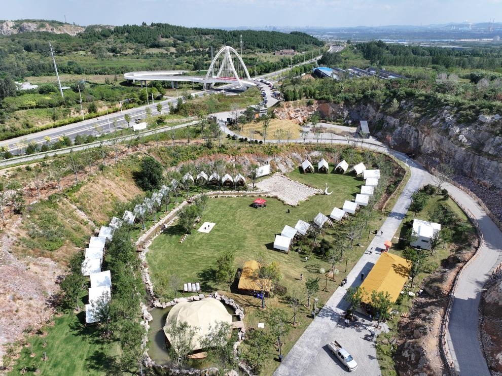 矿野部落位于玉皇山脚下,以矿坑露营为核心特色,是淄博亲子自然探索、近郊露营的网红地标。这里不仅有沉浸式的矿坑露营体验,更陆续推出了草坪音乐会、矿野灯光秀、非遗表演、星空电影节等丰富多彩的亲子文旅产品,家长和孩子可以一起在山间搭起帐篷,重建内心与自然的联结,收获独一无二的亲子时光。