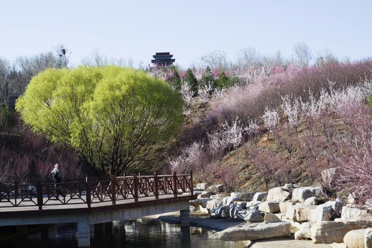 以“道法孕菡谷,云起映花山”为设计主题,花山公园通过山体修复与景观提升,打造了“一轴、一环、六谷”的绝美景观格局。这里不仅有秀美的山林风光,更有深厚的人文底蕴,昊天宫、碧霞祠、王母台等人文古迹坐落于此,与新增的万寿湖、仙人桥、仙女潭等自然景观相映成趣,实现了人文底蕴与自然生态的完美交融。