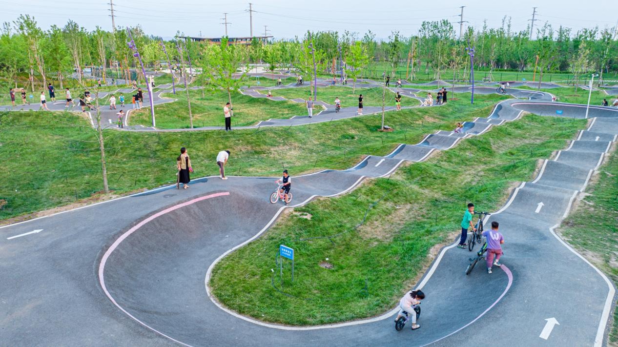 2、孝妇河骑行公园:山东首个全龄化智慧骑行主题公园,具备专业轮滑、滑板、小轮车赛道,并设有1200米业余骑行道,兼顾专业与休闲。花海林间景色宜人,春日骑行于此,追风赏绿,尽享松弛自在。