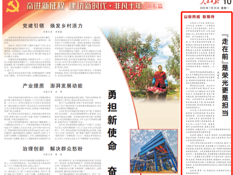 非凡十年 | 人民日报两个整版点赞山东“走在前、开新局”