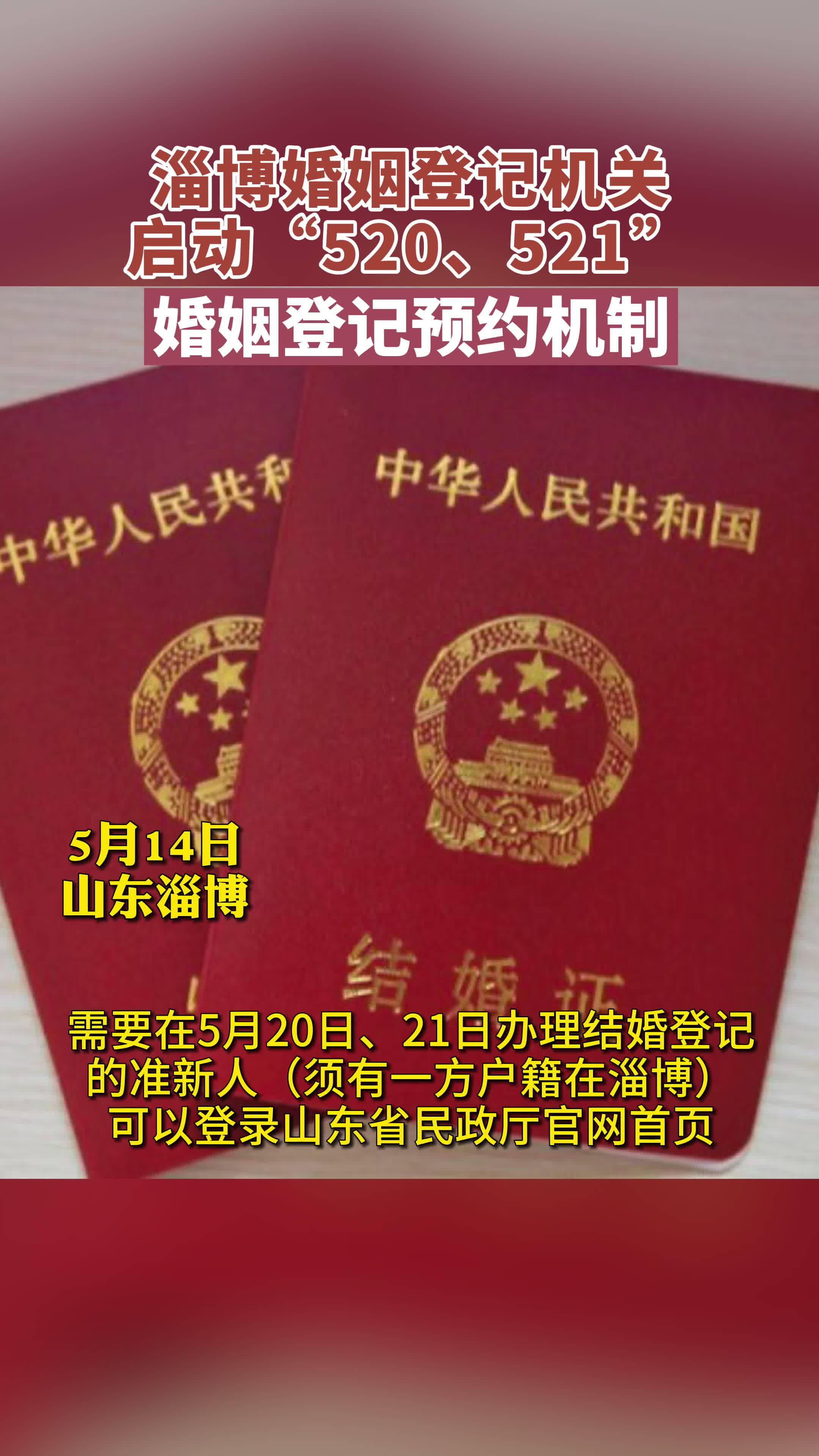 【观淄博】520、521可以预约结婚登记了