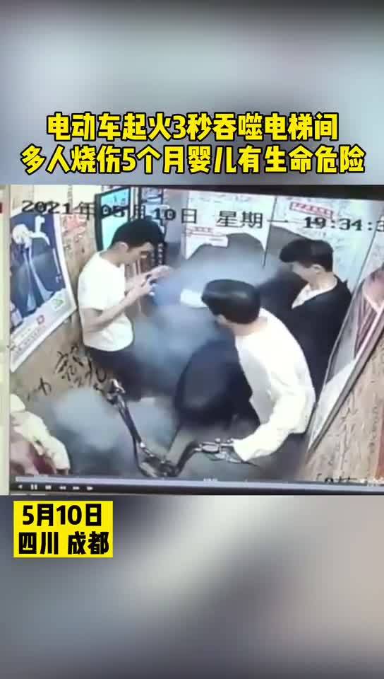 电动车起火3秒吞噬电梯间
