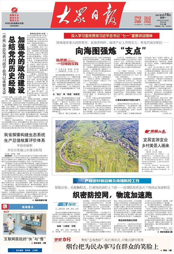 海洋是高质量发展战略要地。深入学习贯彻习近平总书记“七一”重要讲话精神,按照省委海洋强省建设工作会议部署,作为以海洋经济发展为主题的国家级新区,青岛西海岸新区瞄准海洋重大战略需求,在海洋科研、海洋产业上持续发力,推动涉海关键技术、核心装备的自主化,践行“打造海洋强国战略支点”的使命。
