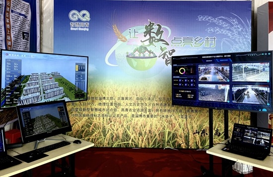 在展厅内,淄博市高青县的黑牛管家大数据云平台正在向大家展示牧场的实时监控画面。高青是“中国黑牛城”、畜牧业强县,高青黑牛产业经过十几年的发展,已成为实现乡村产业振兴、带动群众致富增收的重要支撑。高青县依托高青黑牛、得益乳业两大畜牧业龙头,一头肉牛、一头奶牛,串起了从牧场到餐桌、从养殖到研发的完整产业链,形成了“种、养、加”一体化、一二三产深度融合的“高青模式”。通过打造数字牧场生产模式、创新数字交易营销模式、加速一二三产业融合发展,搭建黑牛管家大数据云平台,实现全县19个牧场的牛群结构、体重、各阶段料肉比等数据实时监控,数字化改造黑牛育种、精深加工、智能交易、冷链物流等全流程各环节,联手阿里巴巴盒马鲜生打造动物蛋白产业链,建设阿里数字农业山东仓,推动销售环节全链路数字化升级。同时大力发展黑牛小镇全产业链产业集群,建设占地910亩的农牧休闲、种植采摘、美食体验、牧场观光等一二三产融合的数字生态牧场;通过“龙头企业+合作社+农户”模式,辐射带动全县2万余户农民从事生态养殖、牧草种植、精深加工等环节的配套服务,每年人均增收5000元以上。