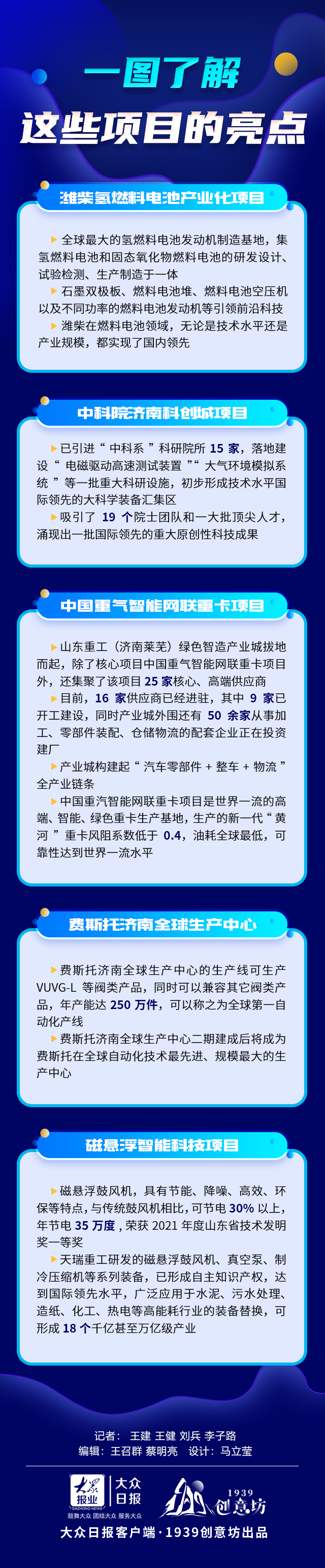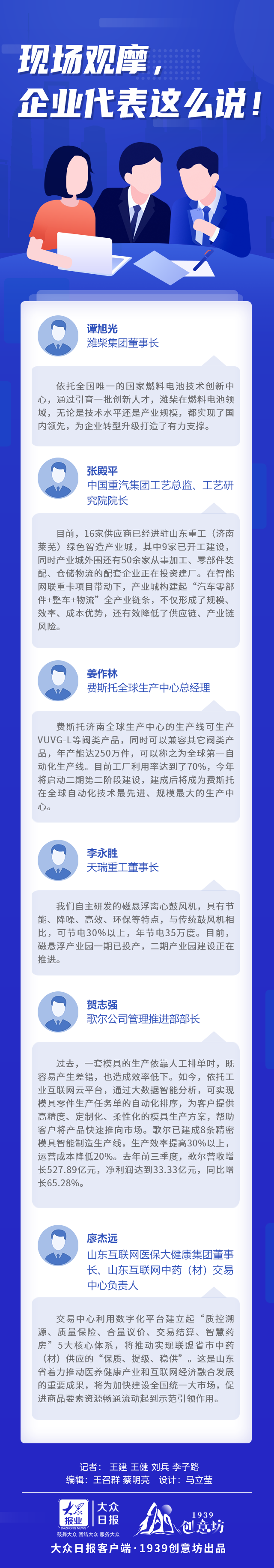 总投资87亿元的中国重汽智能网联重卡项目、突破“卡脖子”关键技术的天瑞重工磁悬浮智能科技项目、加工精度可达正负1微米的歌尔光电二期精密模具智能制造项目……观摩中,一个个大项目、好项目令人目不暇接、耳目一新,深刻感受到山东持续推进新旧动能转换带来的显著成效和红利释放,对新旧动能转换“五年取得突破”充满信心。