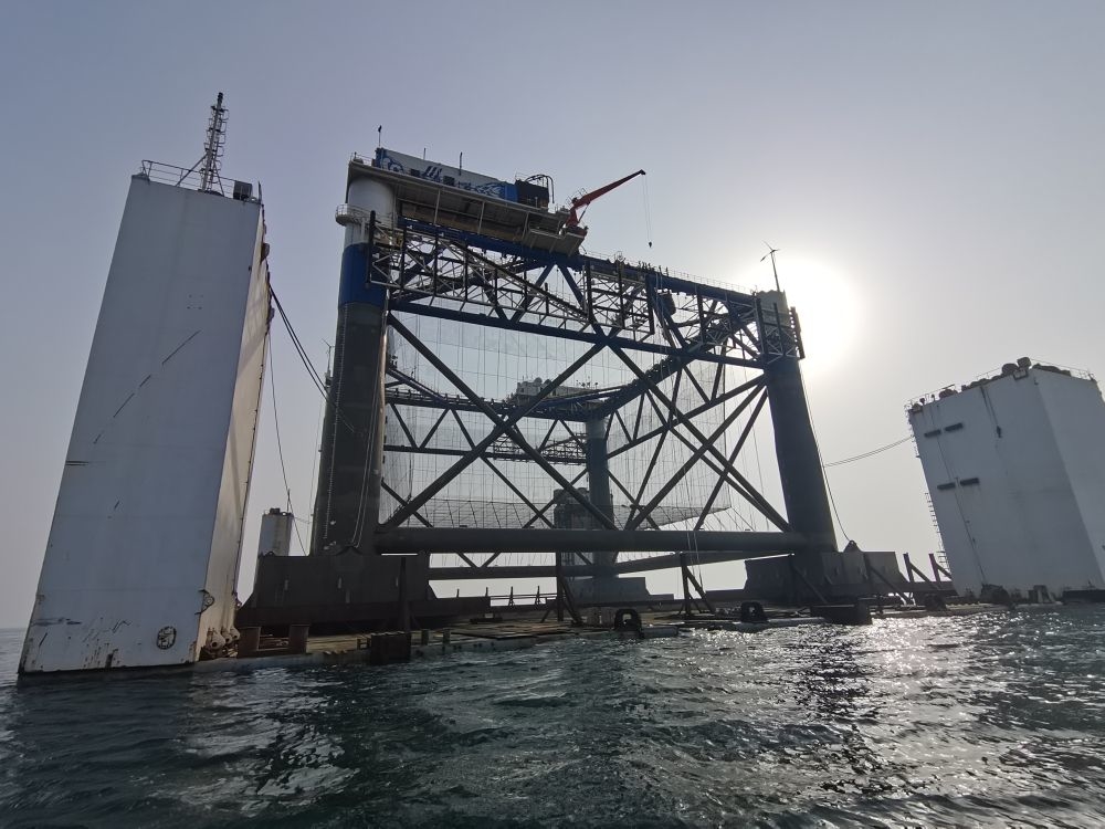 这一设备出自烟台中集来福士公司。近年来,这家海上钻井平台生产企业开始用海工装备制造技术,研发制造海洋牧场专用设施。