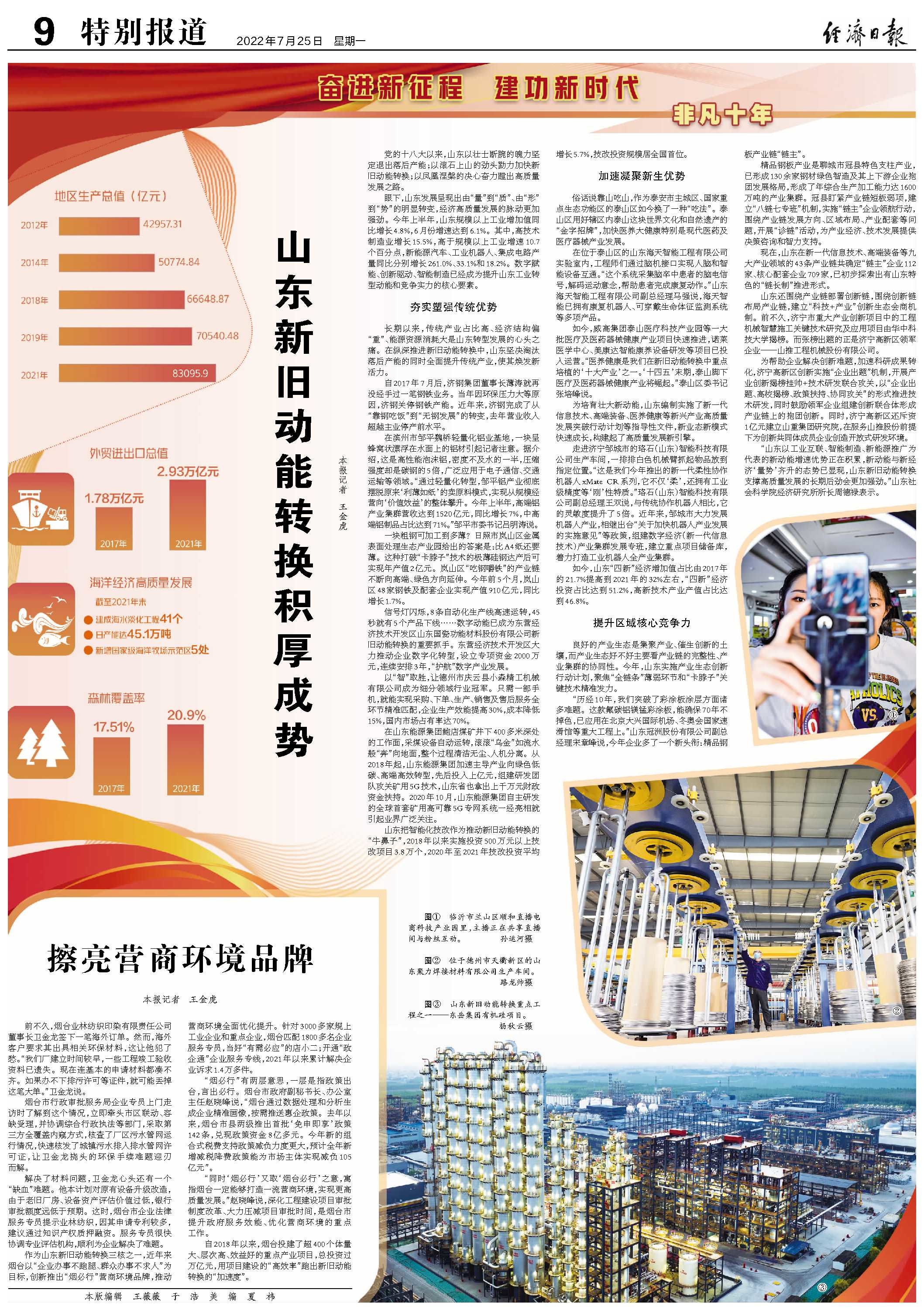 党的十八大以来,山东以壮士断腕的魄力坚定退出落后产能;以滚石上山的劲头勠力加快新旧动能转换;以凤凰涅槃的决心奋力蹚出高质量发展之路。