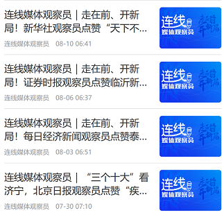 此次主题报道,平台合作工作室发起的“连线媒体观察员”策划,邀请全国媒体记者对山东各地推进“三个十大”的亮点进行推介。连线的媒体观察员既有新华社、光明日报等央媒编辑记者,也有解放日报、北京日报、浙江日报等省级媒体平台,以及证券时报、每日经济新闻等专业媒体。观察员发来的“山东高质量发展亮点值得借鉴”“16市特色鲜明,握指成拳形成山东强省建设的合力”等评价,大大提高了此次主题报道的传播力和影响力。