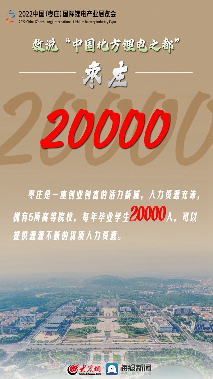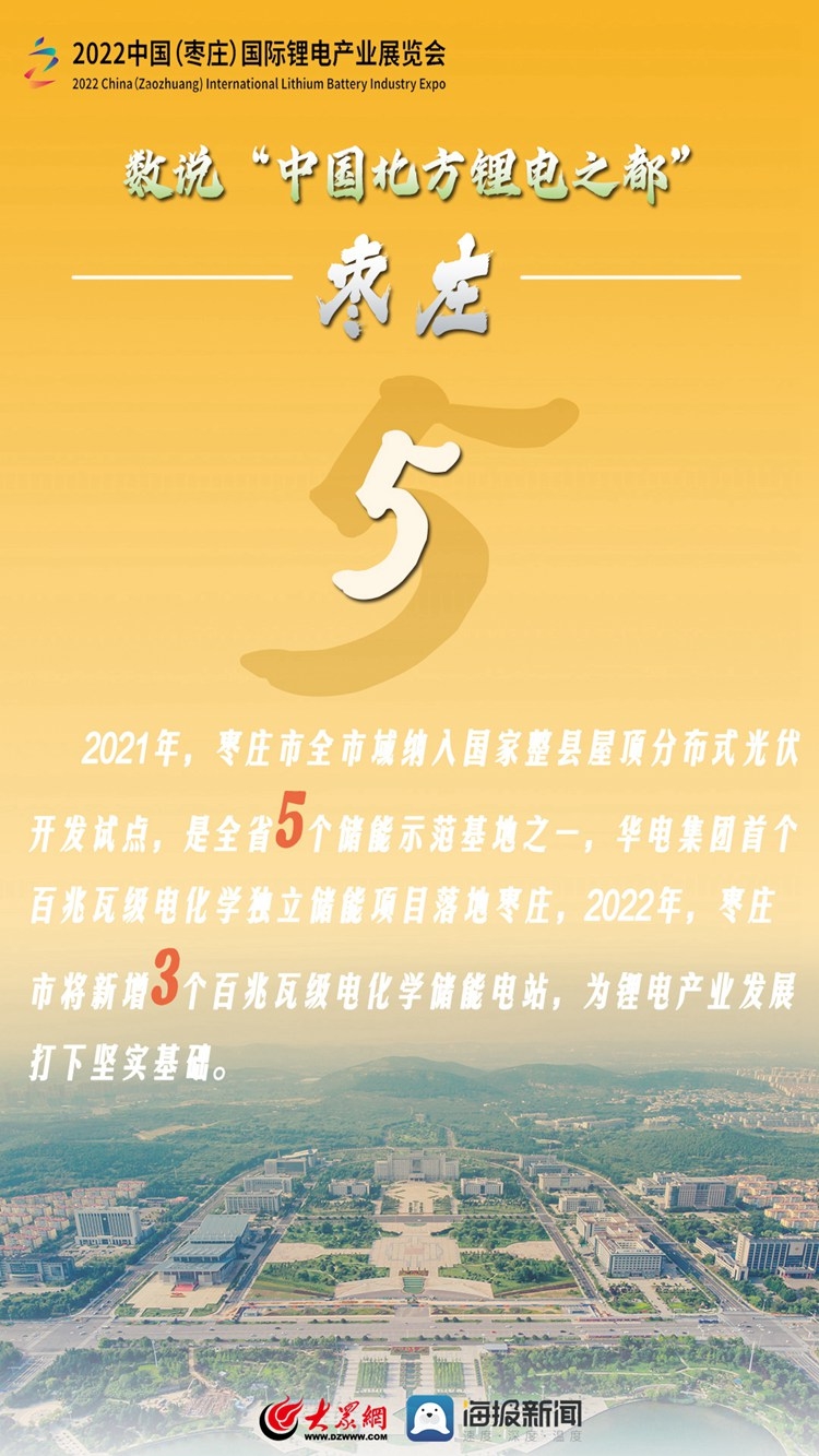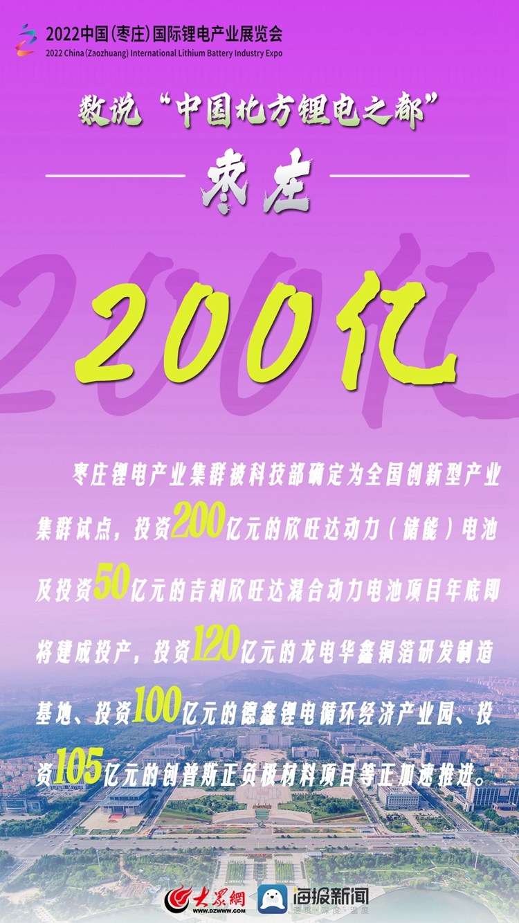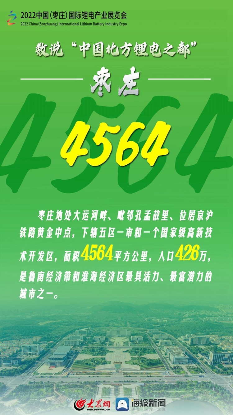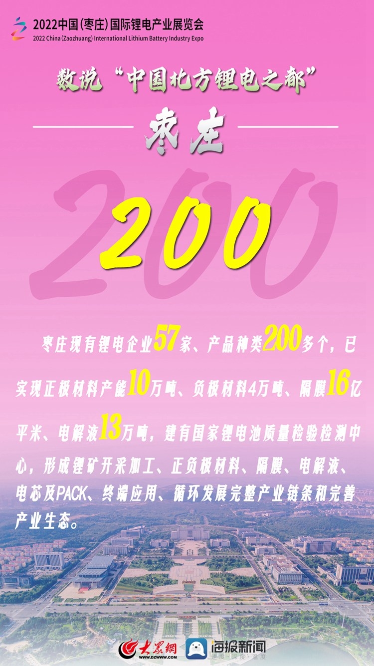 加快发展锂电产业是国家实现能源变革、完成“双碳”战略目标的重要举措。为搭建锂电产业研发制造、经贸交流和投资合作平台,打造中国北方锂电产业发展新高地,中国国际商会、山东省贸促会、山东省能源局、枣庄市人民政府将于9月2日至4日在山东省枣庄市举办“2022中国(枣庄)国际锂电产业展览会”。就让我们通过一组数字了解一下“中国北方锂电之都”——枣庄吧!