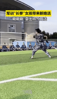 一名女生打出一套帅气长拳
