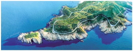 鸟瞰威海千里山海自驾旅游公路。 |