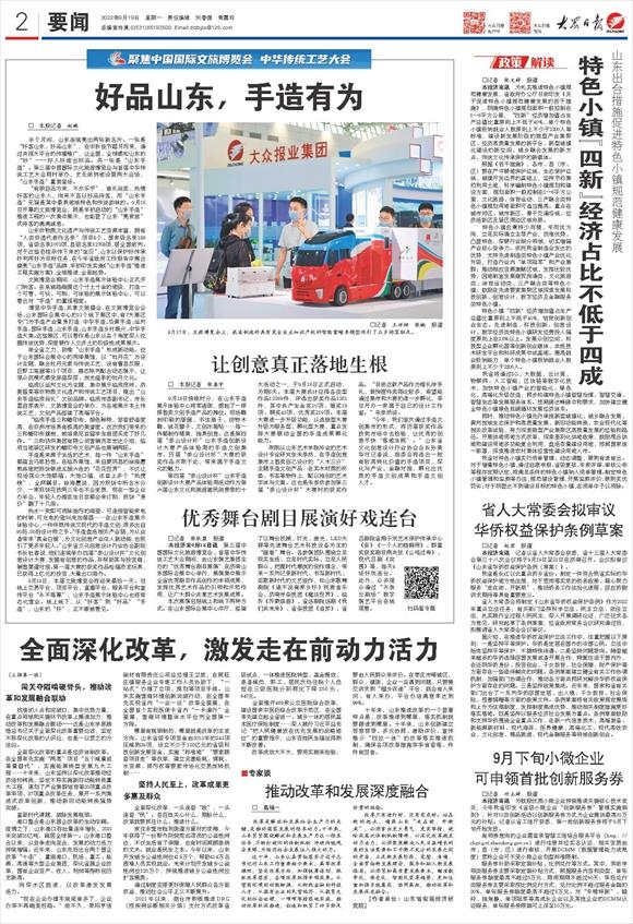 “有朋自远方来,不亦乐乎”,崇礼尚宾、热情好客的山东人,向来不吝以好品待客,而“山东手造”无疑是其中最具地域特色和传统韵味的。9月15日开幕的文旅博览会,既是年初启动的“山东手造”推进工程的一次集中展示,也彰显了山东“亮家底”式待客的满满诚意。