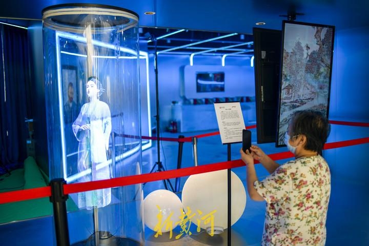 来到三楼,画风有变,穿过往昔之后又迈向了未来。在元宇宙数字展厅,袅袅婷婷又腹有诗书的济南才女李清照款款而至。更奇妙的是,她还会轻歌曼舞、吟诗作赋。这个“数字李清照”是由商汤科技利用人脸识别技术,通过搜索大量历史资料、文献古画,再利用数字化“复原技术”才诞生出来的。她隔壁的济南籍词人辛弃疾也是如此。手造早已突破了人们传统概念中的真正使用双手打磨的物件,也早已引进VR虚拟现实、AR增强现实等技术,融入艺术展演、电商直播、现场展示等,构建沉浸式数字场景,以展现新时代的“山东手造”。
