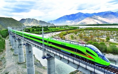 拉林铁路是西藏首条电气化铁路。图为复兴号列车行驶在西藏山南。新华社发