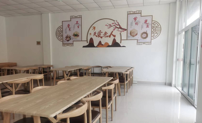 在杨庙社区的老年餐厅内,桌椅整齐排列着。新华网发(秦来玲 摄)