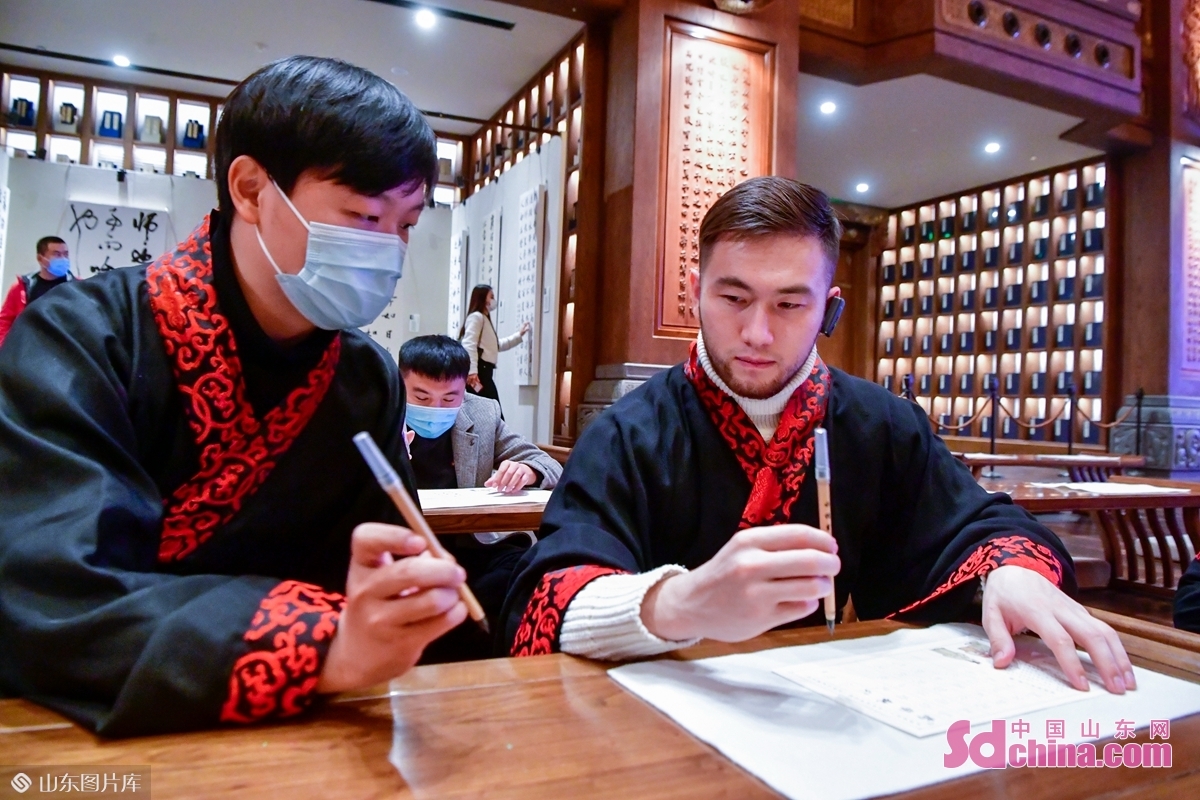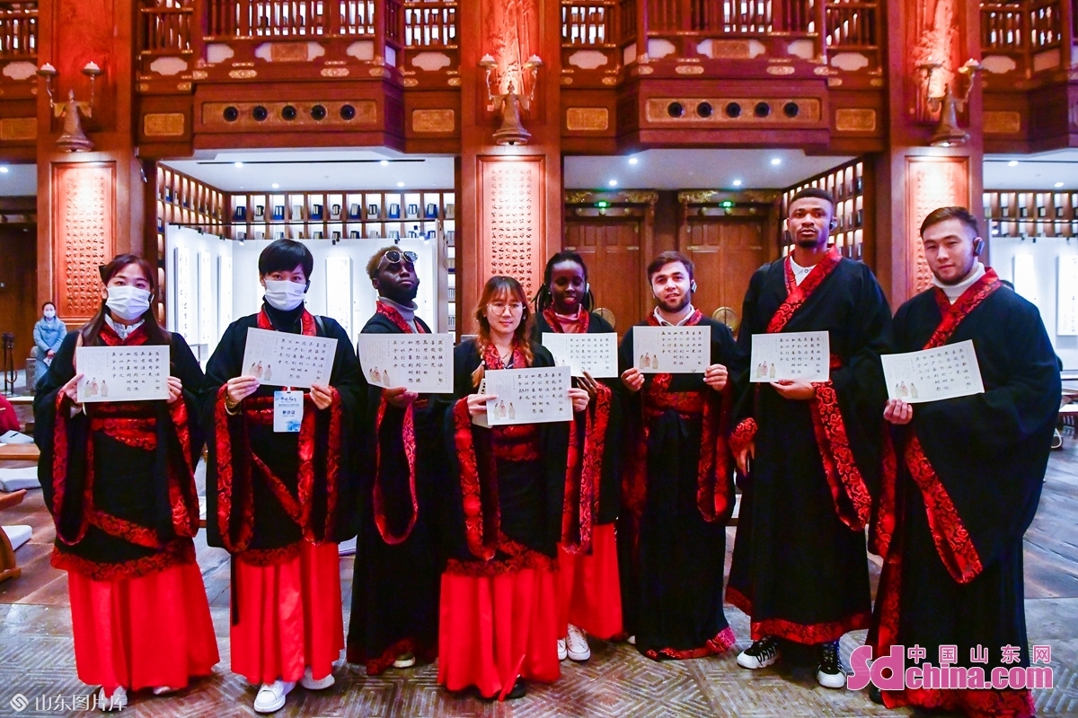5/6 “你好,孔子|Hi,Confucius”国际网红尼山研学成员体验手读《论语》。
