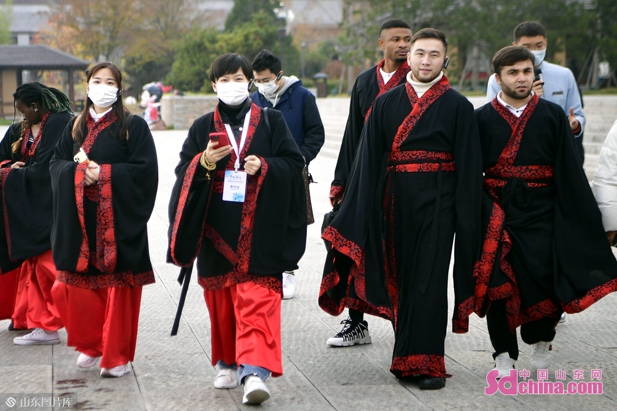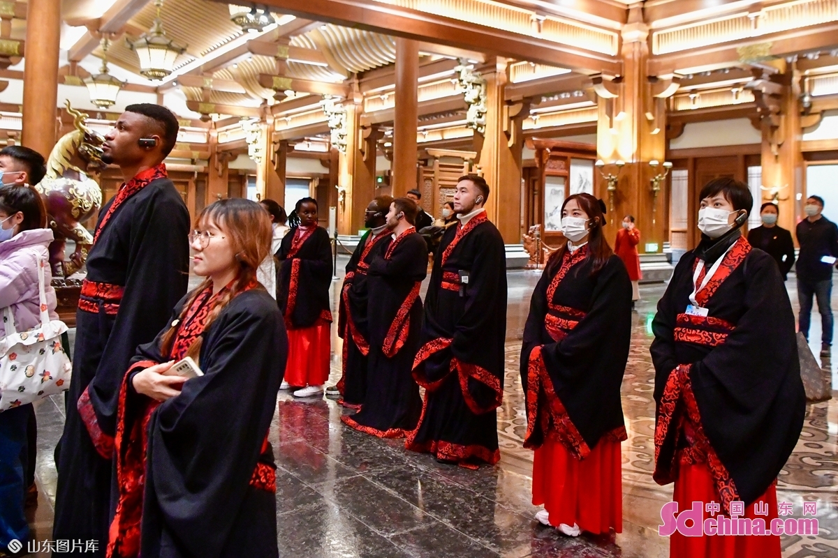 3/6 “你好,孔子|Hi,Confucius”国际网红尼山研学成员体验穿汉服。