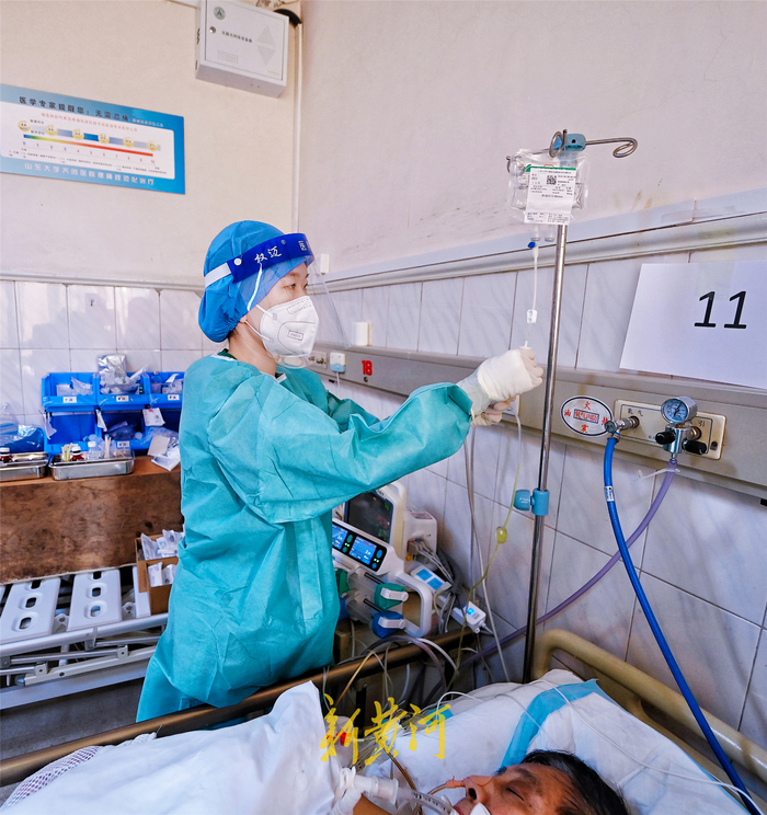 2022年10月11日,张源奔赴新疆参与医疗驰援,于12月底返回济南。随后,他便一头扎进了重症医学科ICU三病区。在经验丰富的张源看来,该病区属于一处“综合ICU”。“尽管我之前也在重症监护室,但这里的病患以中老年人为主,心肺功能较差,病情更加严重,治疗程度也更高。”