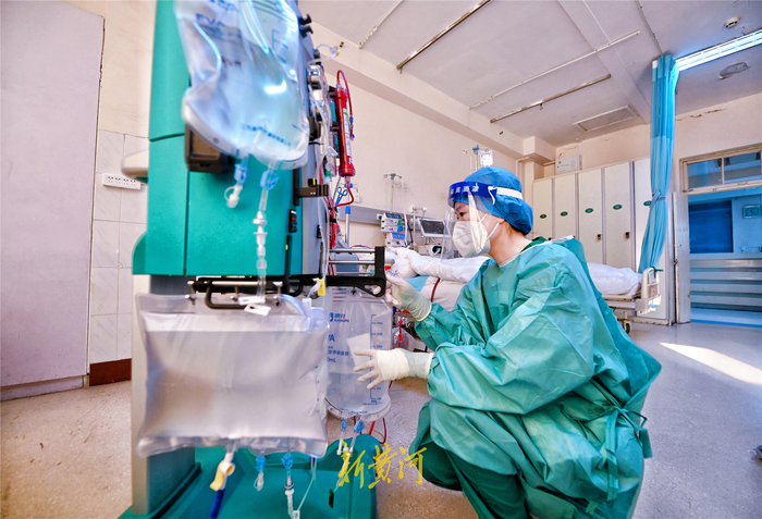 “前期工作可以理解为‘评估’,只是第一轮操作。我们要观察病人反应,再做出精细调整。”韩辉介绍,临时筹建于去年12月12日的ICU三病区,主要用来抢救处于危重症状态的患者。小到喂药、擦身、基础治疗,大到气管切开、血滤、使用ECMO技术(体外膜氧合器,主要用于对重症心肺功能衰竭患者提供持续的体外呼吸与循环)……ICU病区是真正意义上的生命防线区。