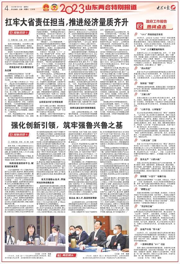 现代水网建设功在当代、利在千秋。报告提出,加快建设国家省级水网先导区。“去年,我省获批建设国家省级水网先导区,是黄河流域唯一的国家省级水网先导区,也是全国水情最复杂、水网建设任务最重的国家省级水网先导区,具有很强的代表性和示范性,建好国家省级水网先导区意义重大。”省水利厅建设处二级调研员王昊委员介绍,我省将继续推进南水北调东线二期工程前期工作,开工太平水库等重点项目建设,尽快形成山东现代水网主骨架和大动脉,与国家骨干网、市县网互联互通,形成一体化的山东现代水网。