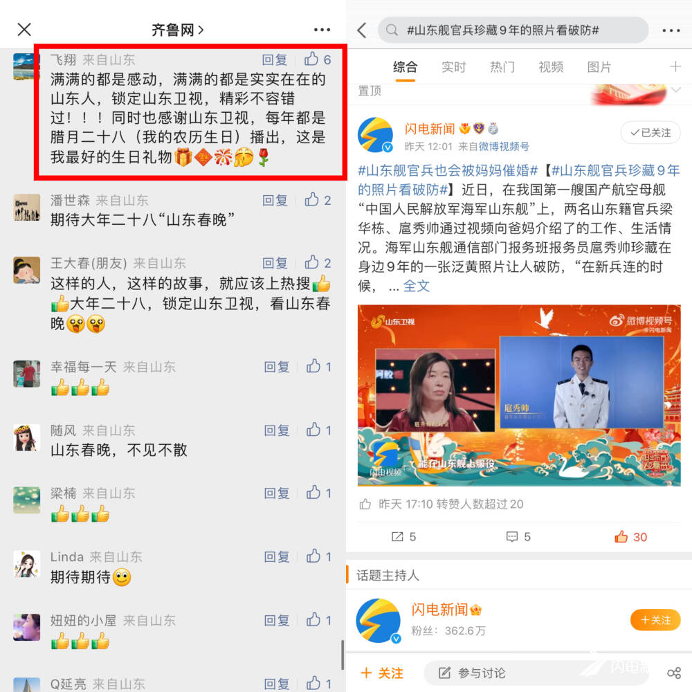 节目未播先火,微博话题#山东姑娘辞职接替父亲戍边6年、#夫妻戍边近60年回家过年2次 冲进微博全国热搜榜,话题阅读量破1.4亿。