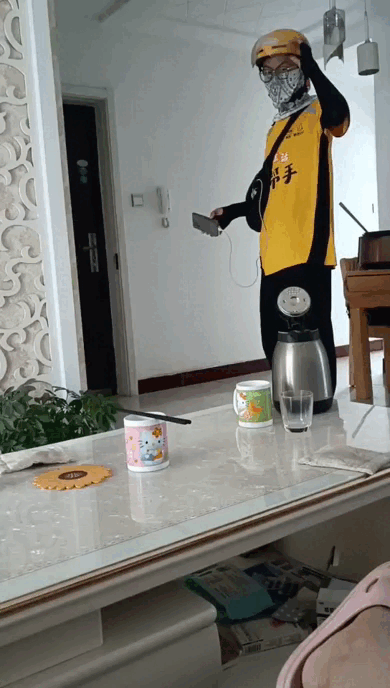 △赵春阳中午回家吃个饭继续送外卖(郭女士供图)