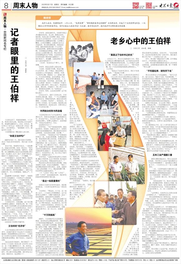联盟化工集团总公司的董事长杨志强回忆,磷肥厂启动时,王伯祥安排盐业公司借给50万元的启动资金。“县委领导对我们这么器重、关心,我们自然是不遗余力,就这样拼命干了一年,企业扭亏为盈,又拼命干了两年,利税过了千万元,成为全省同行业的排头兵。1999年,县委决定化肥厂和磷肥厂合并,组建了联盟化工集团总公司,我任董事长兼总经理,企业一年上一个新台阶。”杨志强说。