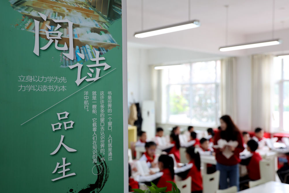 4月20日,山东省枣庄市山亭区新纪元小学的学生在阅览室读书。新华社发(李宗宪 摄)