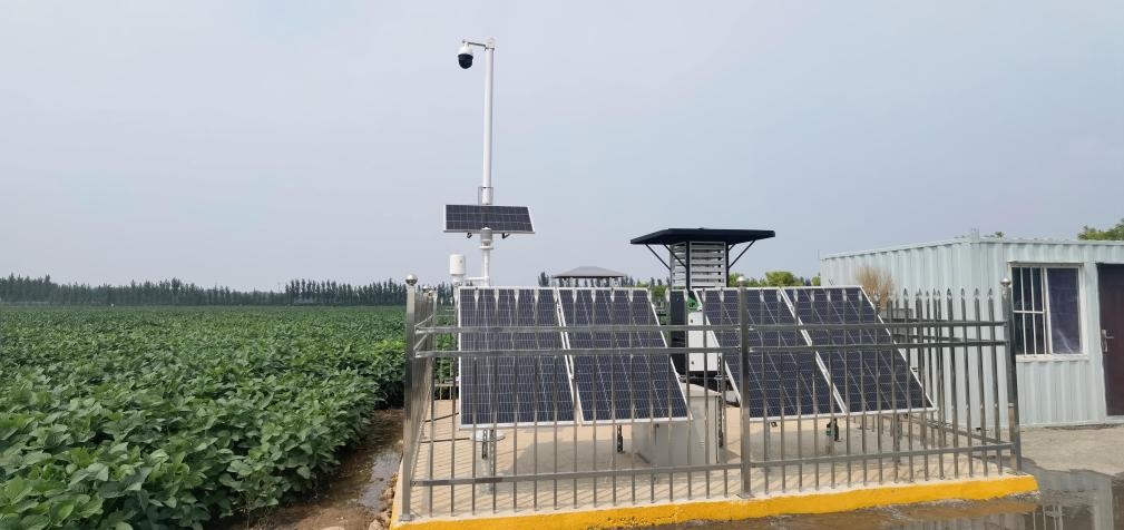 嘉祥县尊农家庭农场负责人陈庆树的大豆田边建有田间气象站和病虫害观测站。新华社记者叶婧 摄