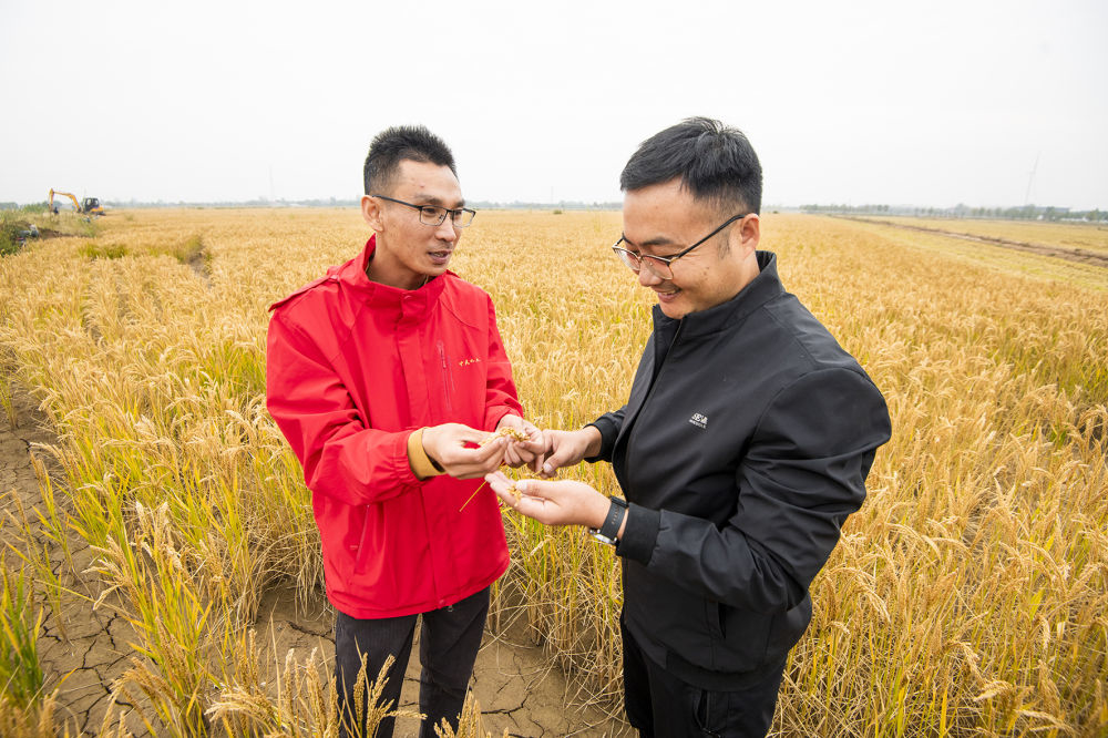 “这片地之前是撂荒的盐碱地,芦草和碱蓬遍地都是,就是不长庄稼。”李明海是徐家村党支部书记,对村里的耕地情况熟悉得很。多年来,受海水倒灌影响,村里不少土地盐碱化,每年投入不少,但粮食产量不及好地的四分之一,为此村里没少费脑筋。2022年,在县、乡推动下,徐家村与青岛市海水稻研发中心建立联系,开始试种耐盐碱海水稻品种。
