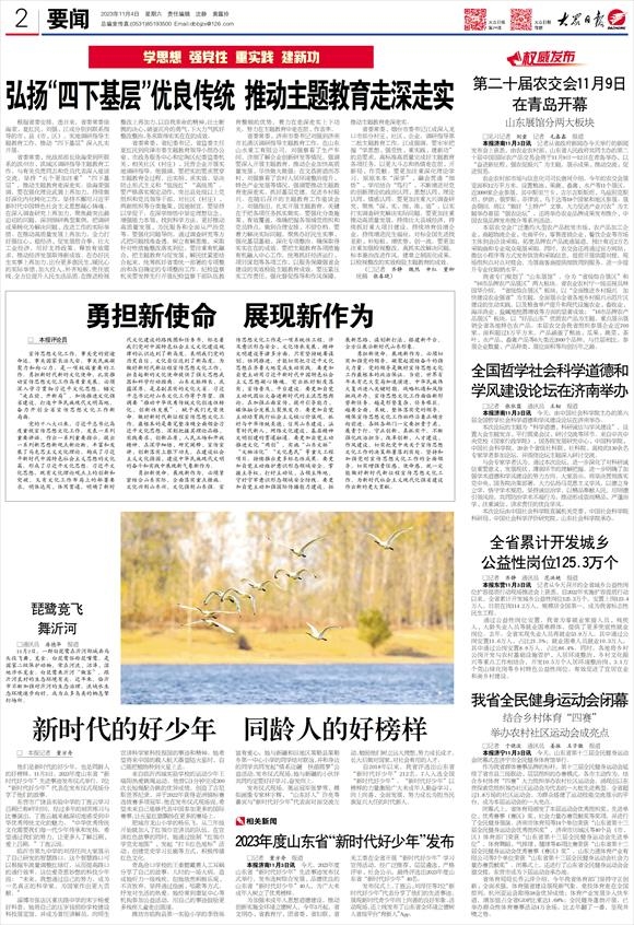 勇担新使命,展现新作为,必须紧密结合山东实际,全面落实重点措施。文化兴则山东兴,文化强则山东强。宣传思想文化工作是一项系统性工程,涉及意识形态安全、文化传承发展、精神文明建设等诸多方面,只有坚持统筹谋划、协同推进,才能切实把习近平文化思想在齐鲁大地变成生动实践。要更加自觉主动用习近平新时代中国特色社会主义思想凝心铸魂,突出抓好制度落实、宣传普及、平台建设。要更加自觉主动巩固壮大奋进新时代的主流思想舆论,在加强正面宣传、提升引导能力、媒体融合发展上聚焦发力。要更加自觉主动培育践行社会主义核心价值观,抓好与中华传统美德、信用山东建设、涵育时代新人、网络文化建设、基层精神文明创建的贯通融通。要更加自觉主动推进文化“两创”,实施“山东文脉”“文物活化”“文化惠民”等重大工程项目,持续推出更多标志性成果。要更加自觉主动维护意识形态领域安全,掌握主导权、打好主动仗、占领主阵地,守好守牢意识形态领域安全防线。要更加自觉主动加强国际传播能力建设,拓展新思路、谋划新打法、搭建新平台,全方位展示新时代山东形象。