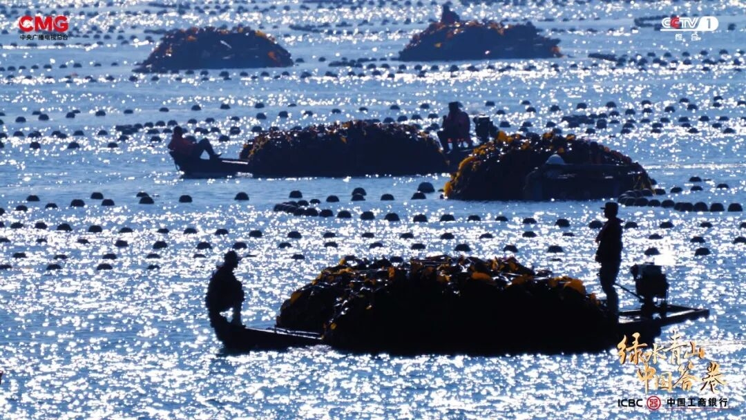 凌晨4点的爱伦湾,渔民们迎着曙光收获肥美海带。这片曾经因过度捕捞而资源枯竭的海域,如今通过“721”生态养殖模式重焕生机——70%海域养藻类,20%养贝类,10%发展鱼类养殖,形成藻类固碳、贝类净水的循环系统。