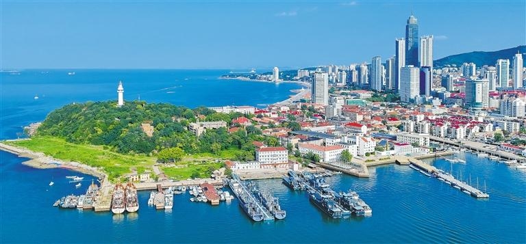 烟台山与烟台港全景图。姚南通摄