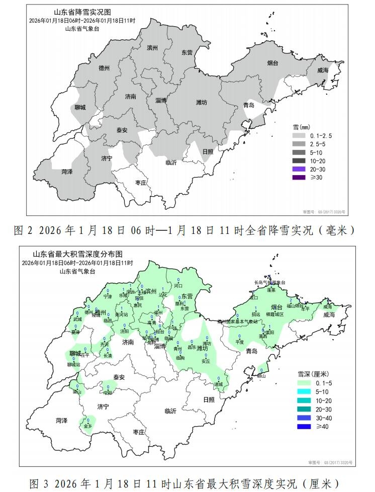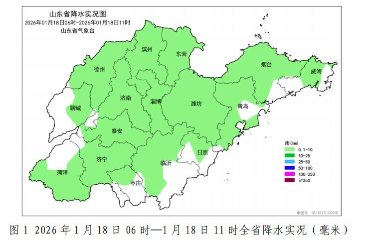 山东省气象台1月18日11时发布天气实况与预报。